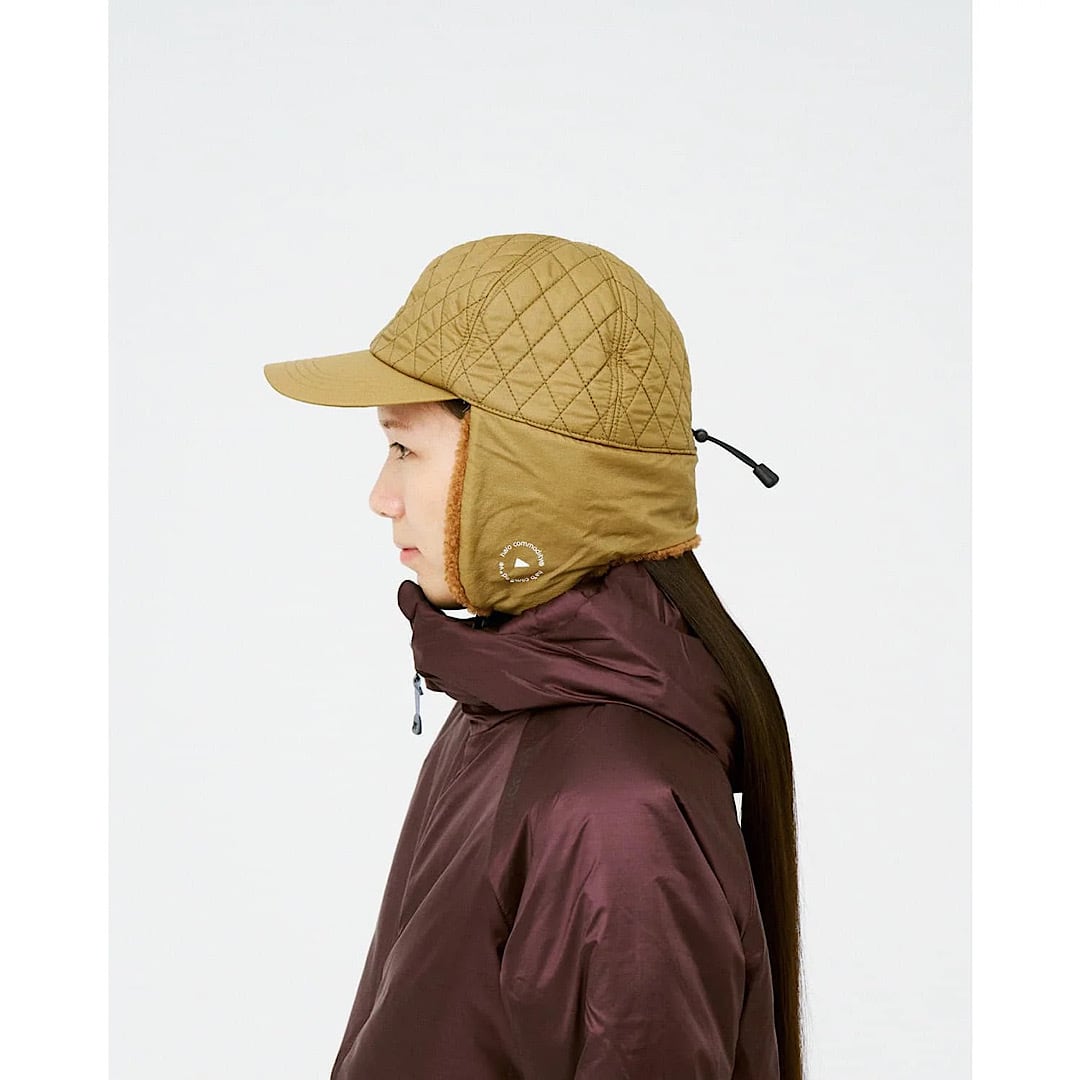 軽量なリップストップのキルティング素材を使用したボアの耳当て付きキャップ。