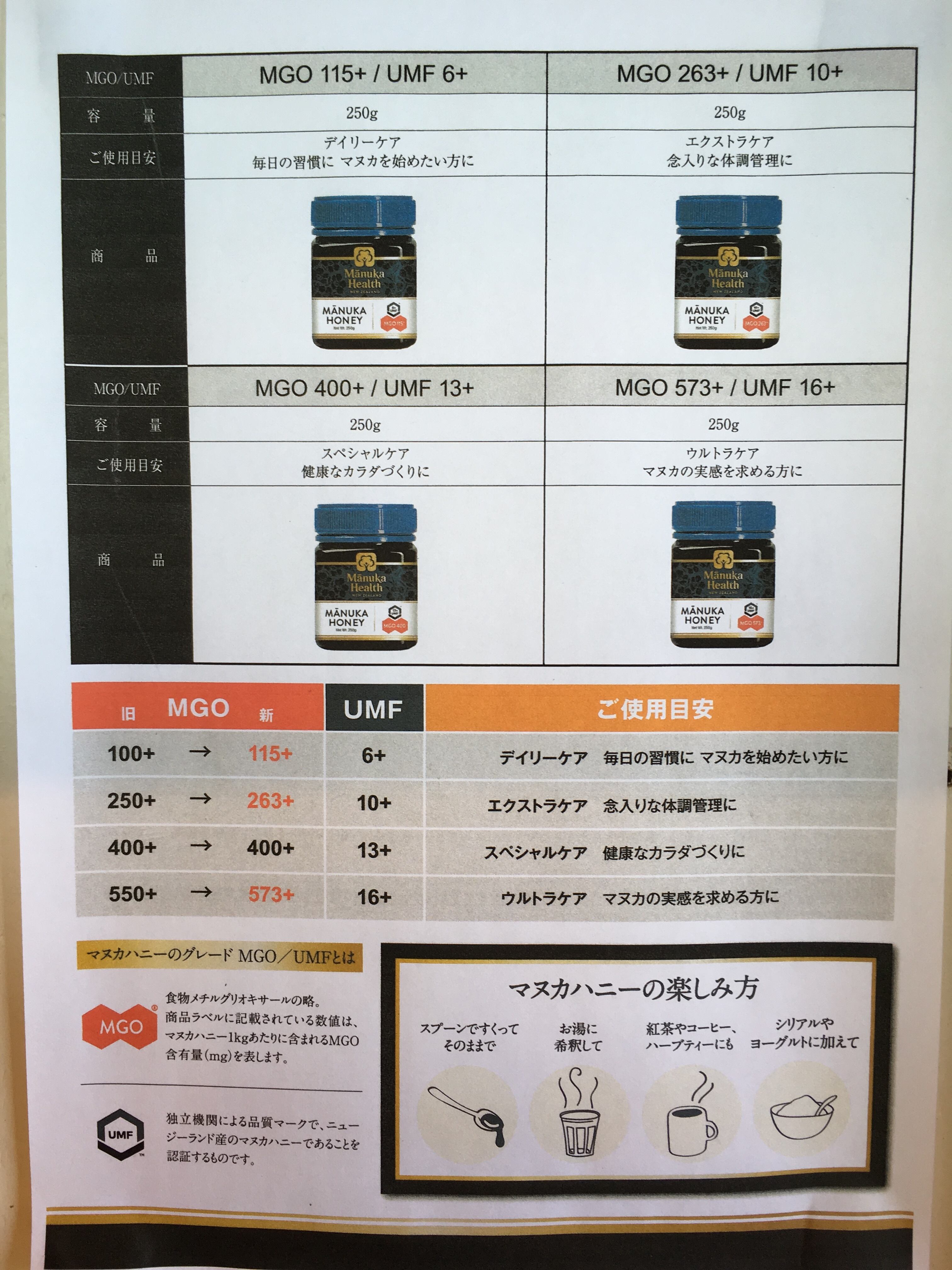 MGOはマヌカハニーの抗菌性主成分であるMGOの含有量です。